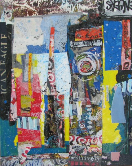 | 8 x 8 upcycled art collage mounted on canvas |