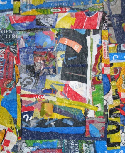 | 20 x 16 fusion application mounted on canvas |upcycled art collage 20 x 16