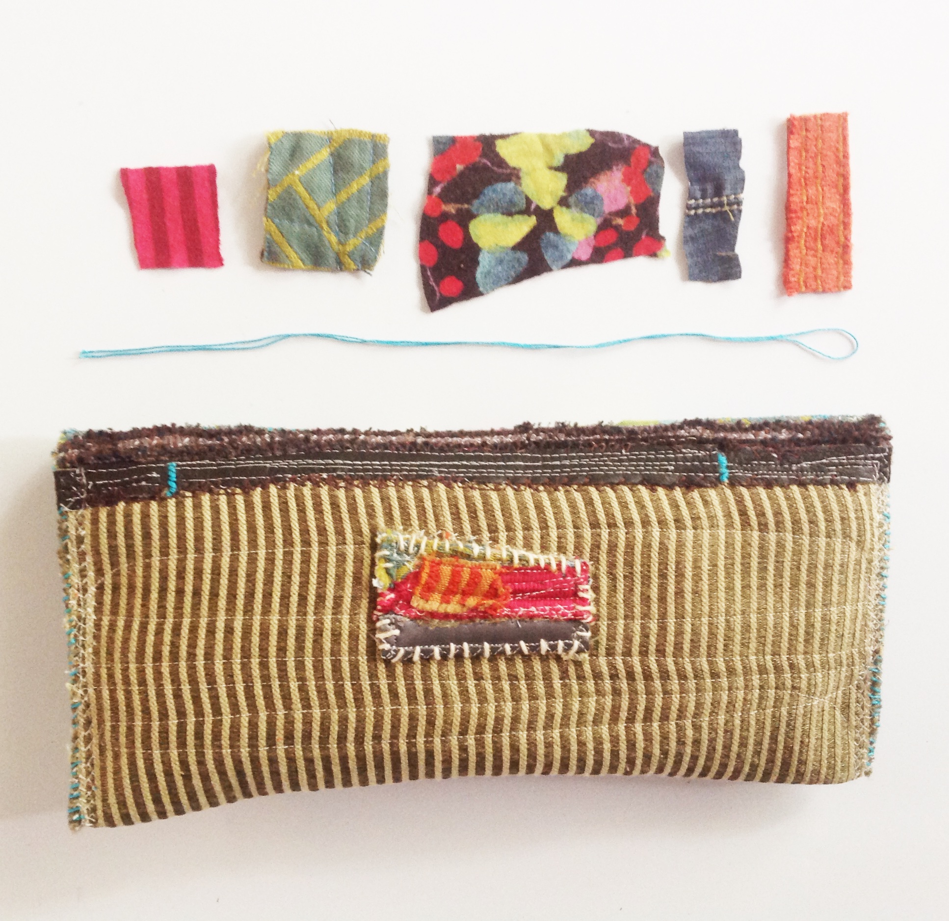 upcycled bags | upholstery fabric samples; recycled sweaters | vintage buttons | handstitching