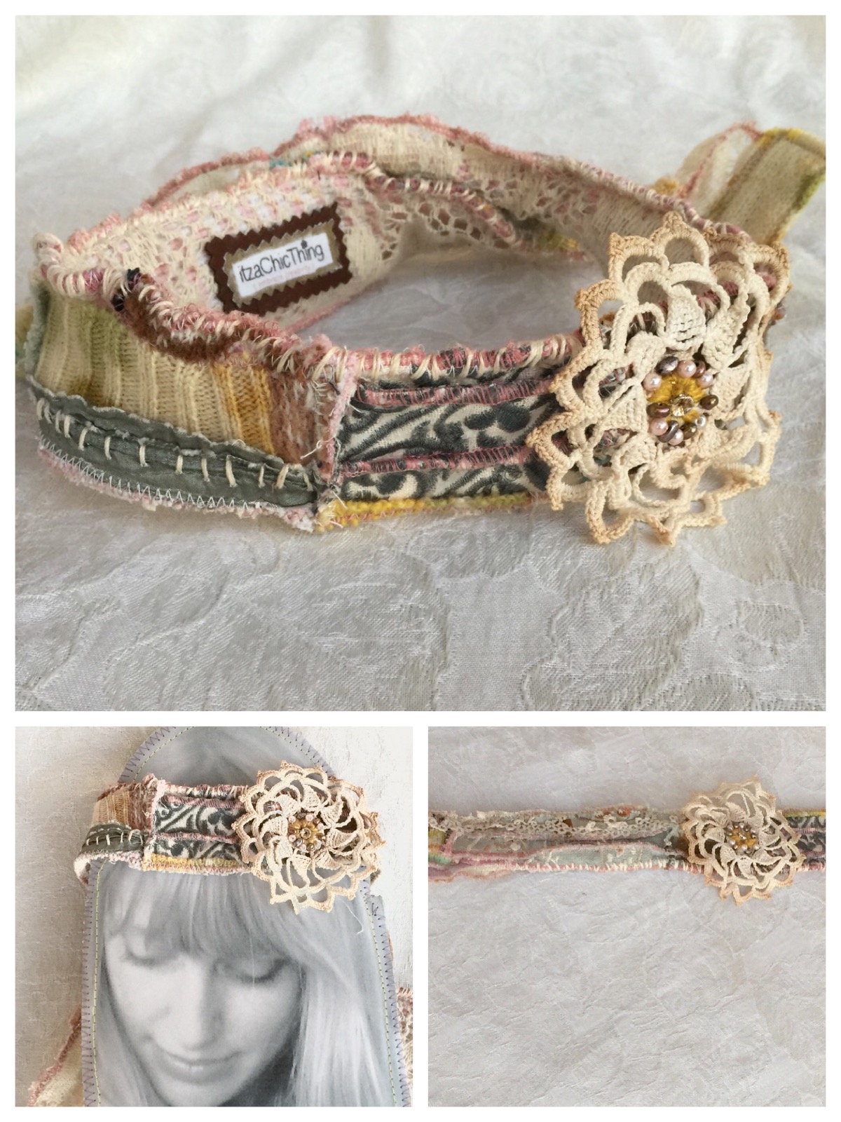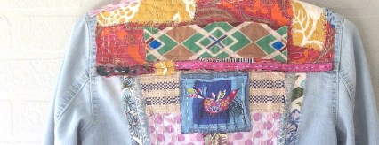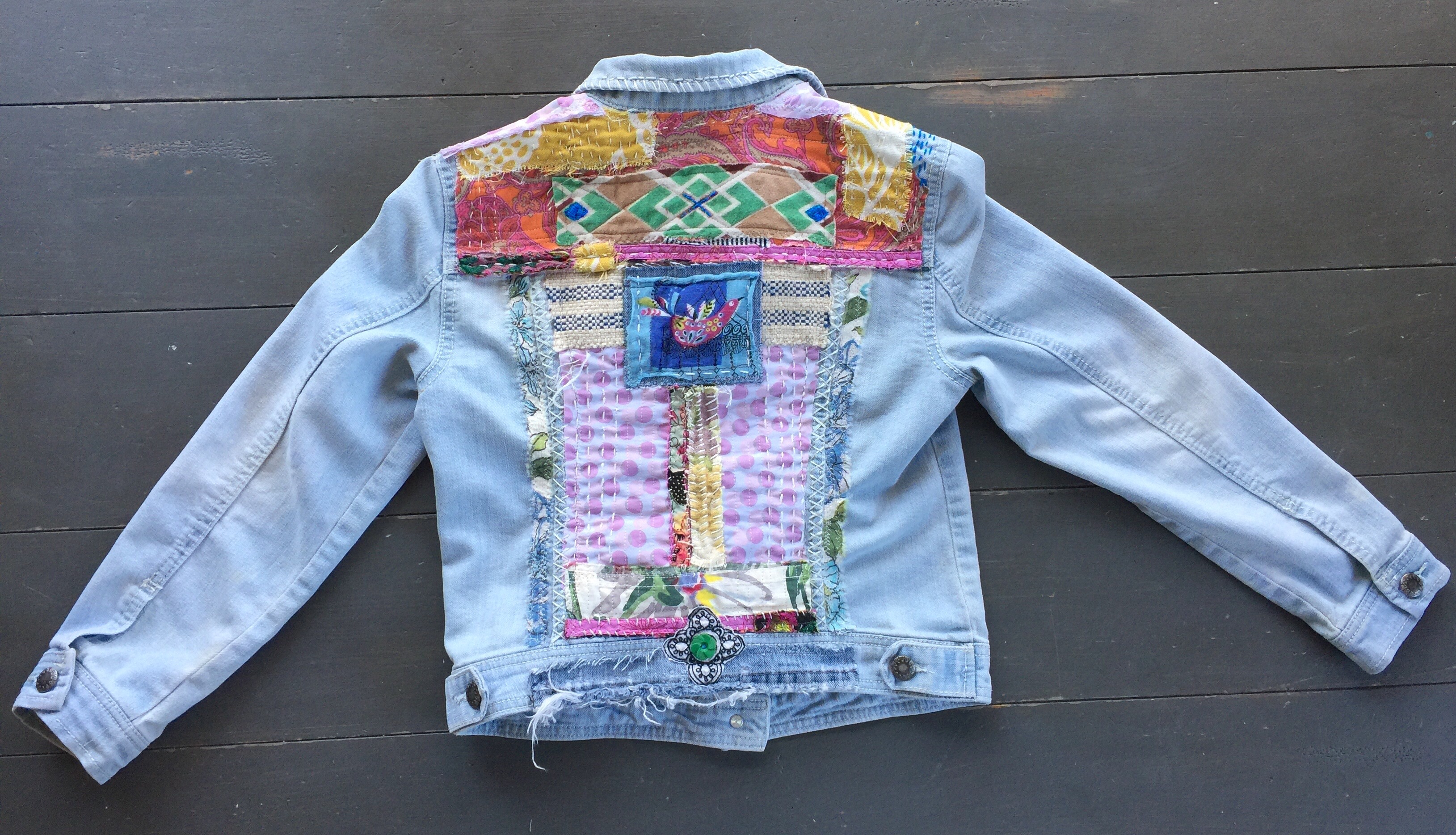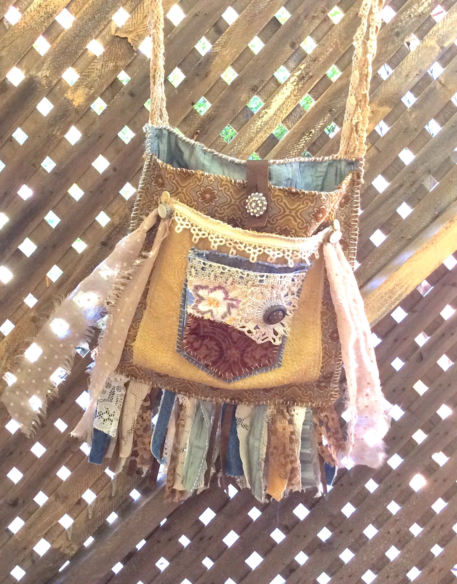 upcycled fabric snippets, denim, vintage lace, embroidery & crochet