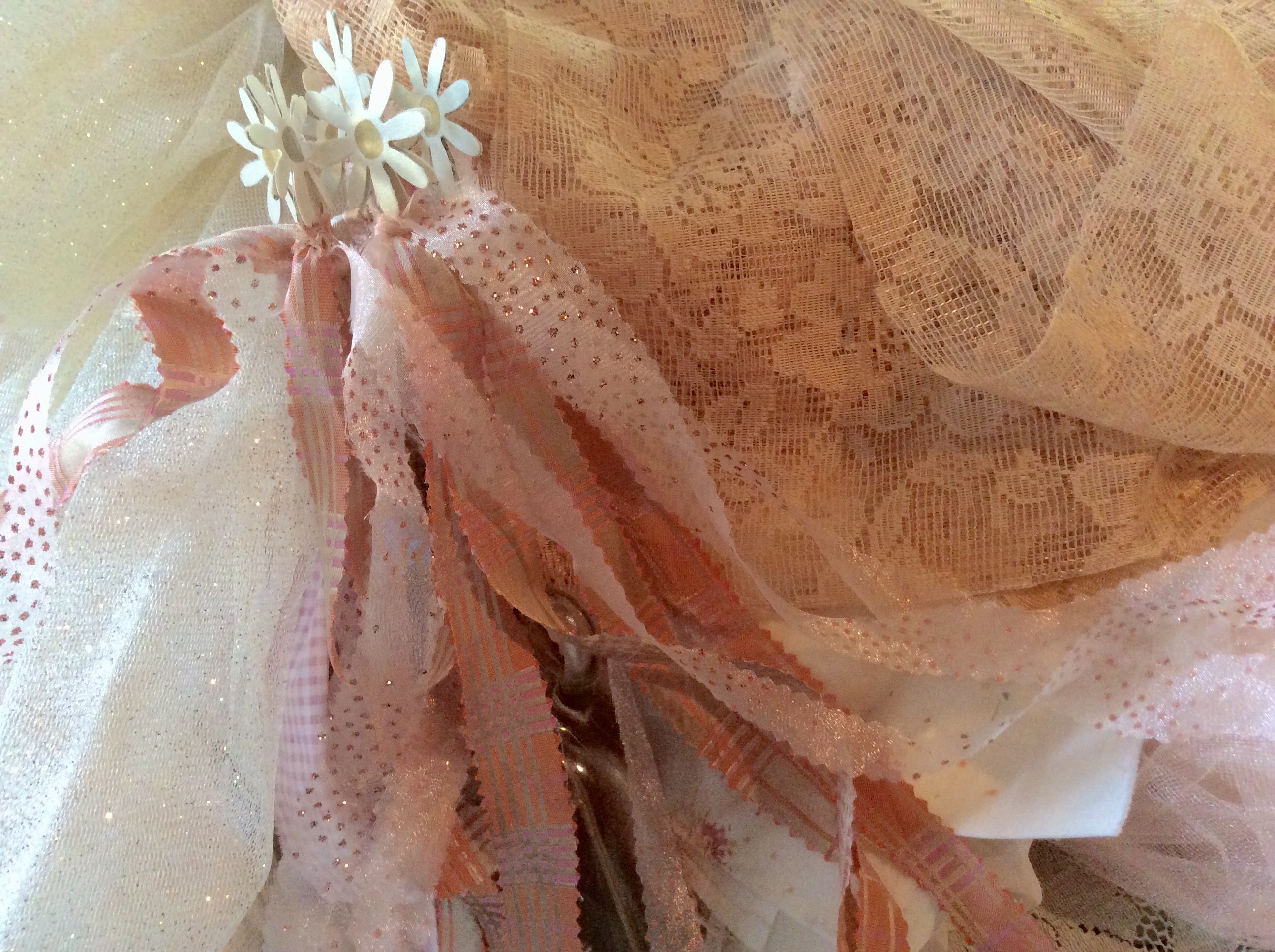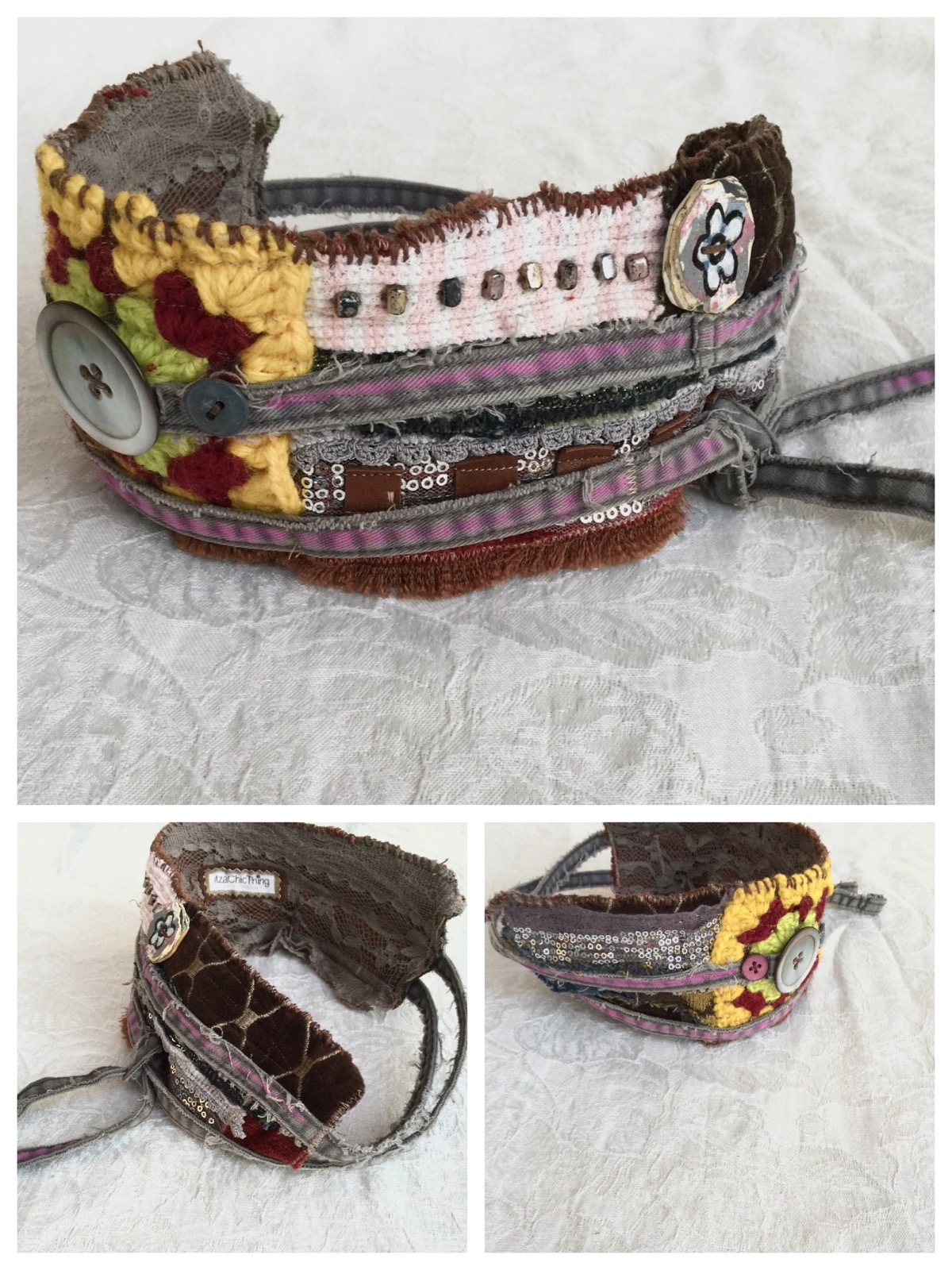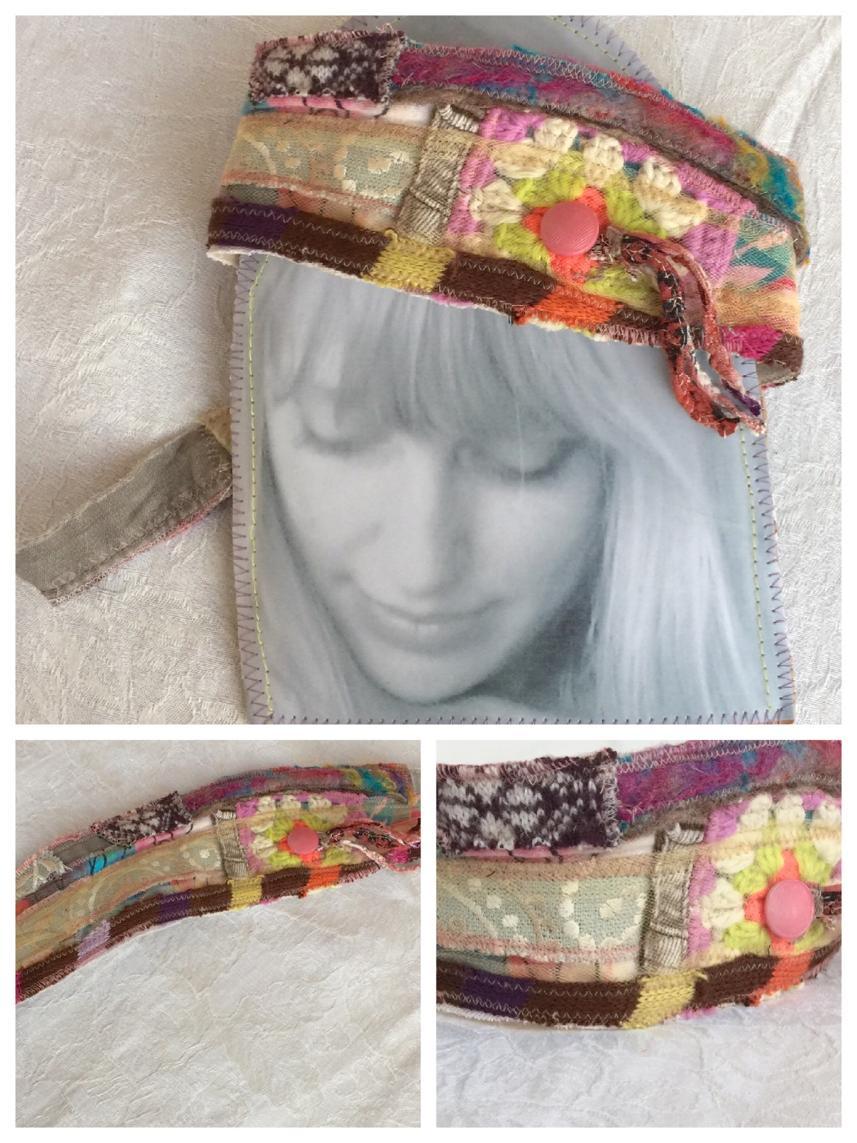 upcycled fabric snippets, denim, vintage lace, embroidery & crochet