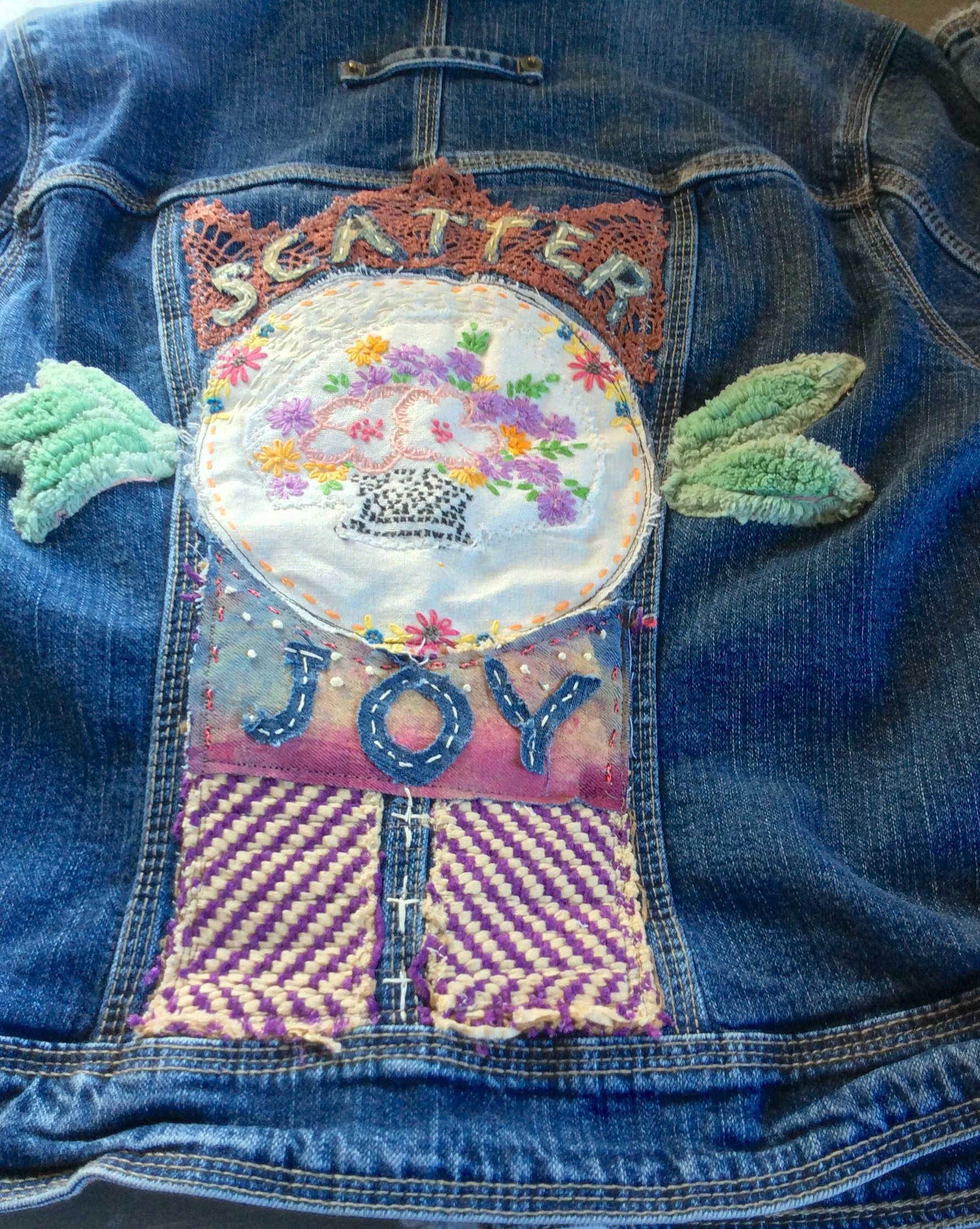 These. And more upcycled itzachicthing denim jackets are now at Bombadil Studios in Springfield, IL.  I’ve got a stash of unembellished jackets, all shapes and sizes yet to do.