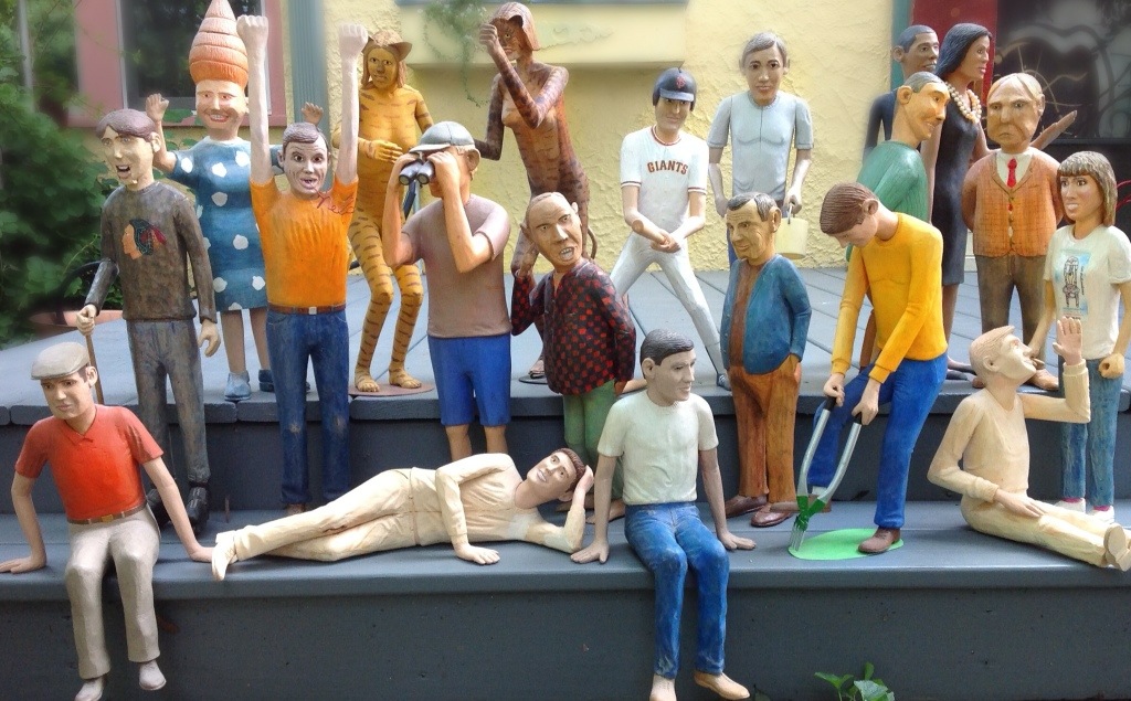 Rumor has it, they come alive at night. By day, they sit on our shelves and function as banks for pocket change….and as conversation pieces. All were hand carved and created by my dad :)
